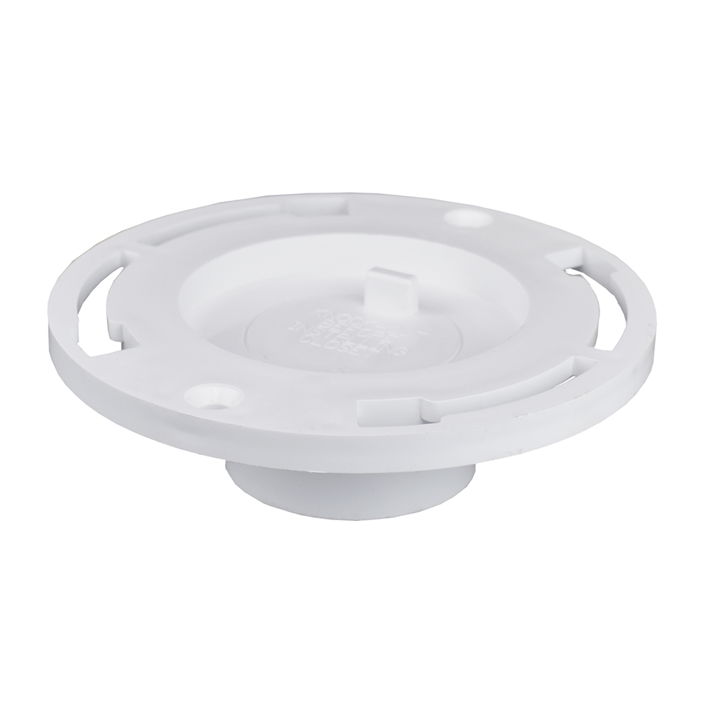 3″ PVC CLOSET FLANGE WITH KNOCKOUT / FITS INSIDE OF 3″ DWV PIPE. HAS TWO MOUNTING SLOTS TO ALLOW PRECISE ALIGNMENT OF WATER CLOSET. FITS FLUSH WITH FLOOR.