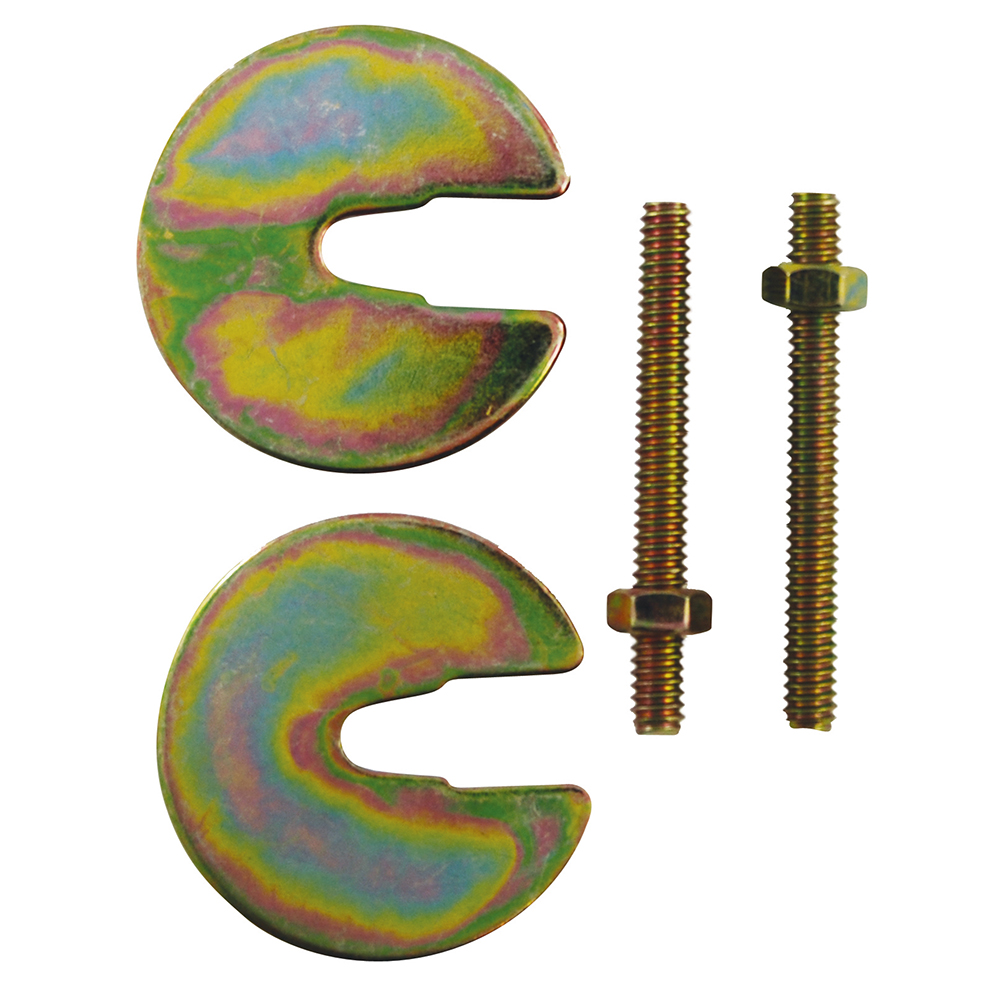 Kit includes two each: bolts, washers and nuts. Brass plated. 1/4″ threads.
