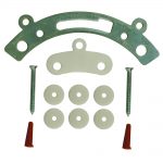 Mounts to floor to stabilize toilet. Use w/ brass, copper, plastic and cast iron flanges. Eliminate the need to replaced broken closet flanges. Simply place under the broken area of ring and tighten. Fasten flange to floor with wood screws provided. Can use link provided to connected multiple flanges.