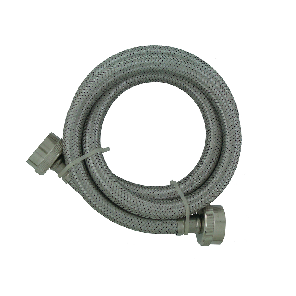 6′ length 304 grade stainless steel braided connectors with 3/4″ female hose thread connections. 1000 PSI leak point. 3/8″ ID hose with 3/4″ FHT (Female Hose Thread) connections. For hot and cold water use. Comes with washers.